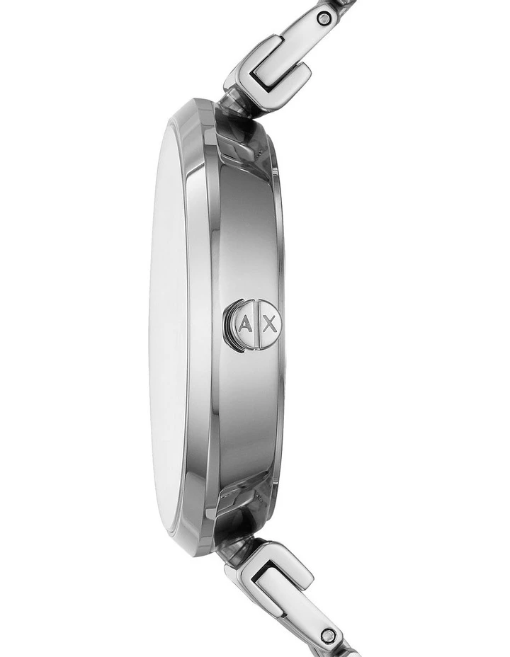 Minimalistically elegant, this women’s analog watch from the House of Armani Exchange makes for a perfect wear for formal days. The Outlet Zoe takes a turn for the sophisticated, incorporating a rich silver T-bar bracelet which holds the piece together. Featuring an elite a textured silver sunray dial with silver-tone stick and dot indexes, three-hand movement completes the look. It is a refine addition to your everyday attire.