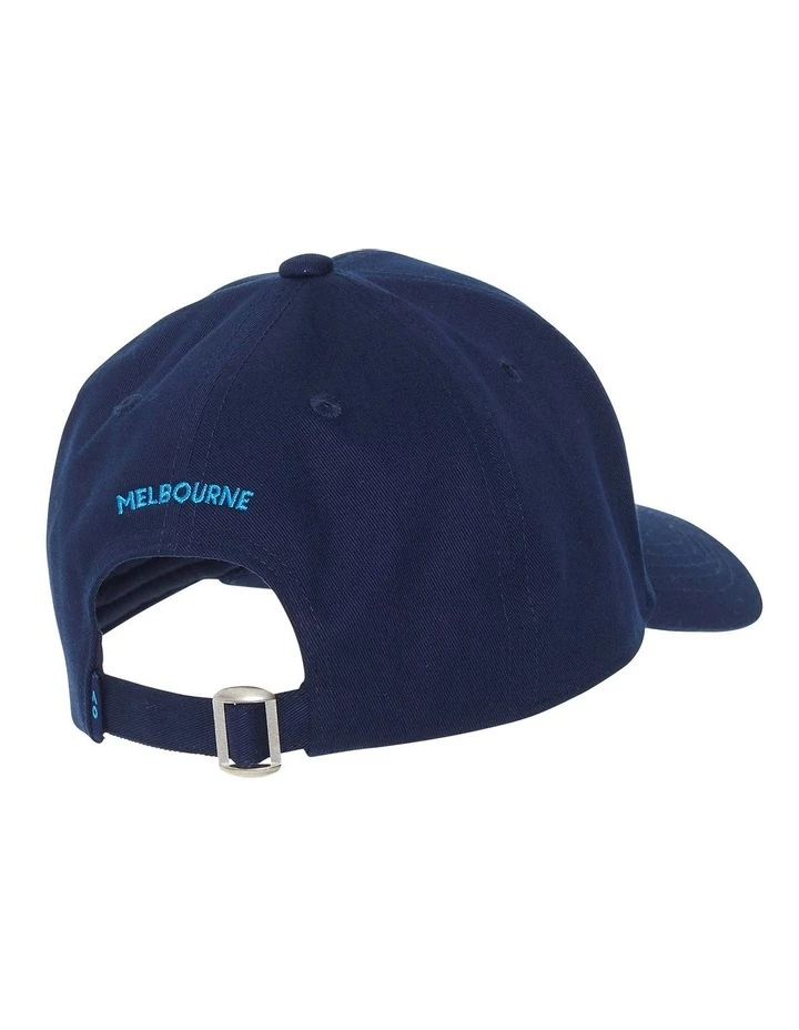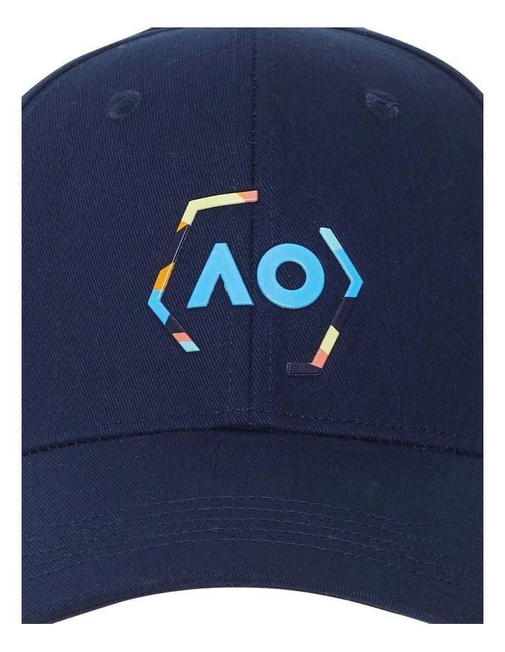 Classic cotton twill cap with a contrast curved under brim and Australian Open hexagon logo. A premium metal slider completes the look allowing for complete control of fit.