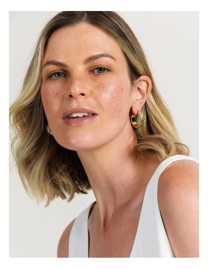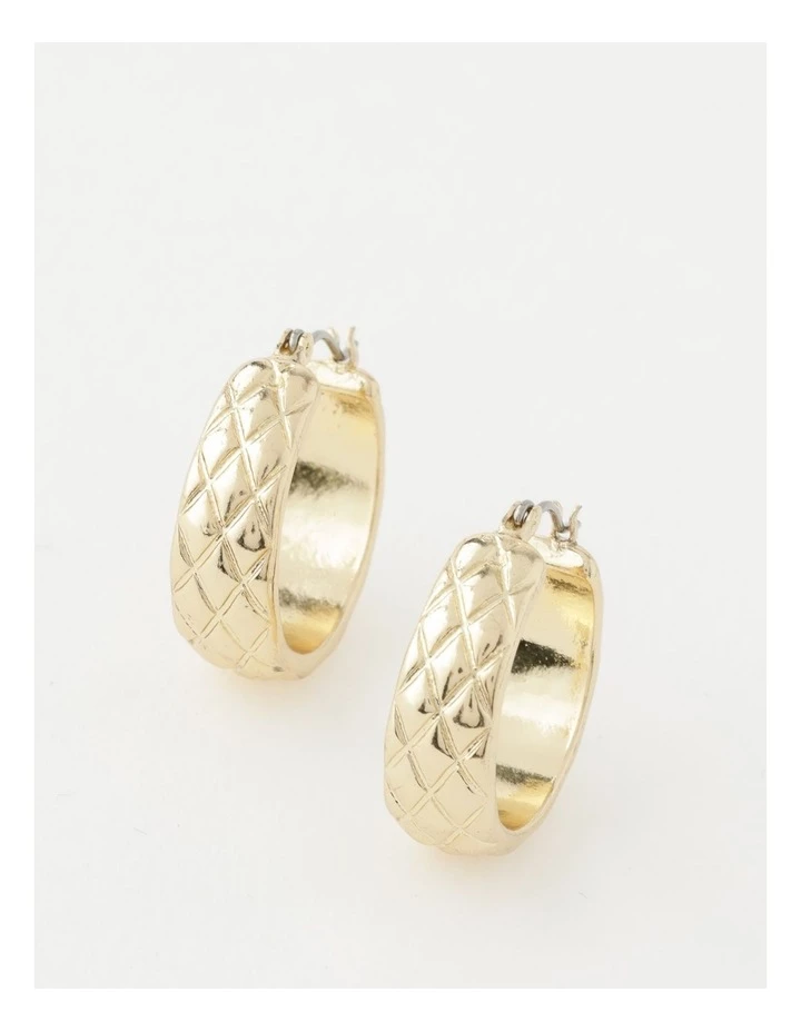 Elevate your look with hoop earrings. These earrings are gold-toned and boast diamond etching for some added flair. Layer with your favourite gold jewellery for maximum impact.
