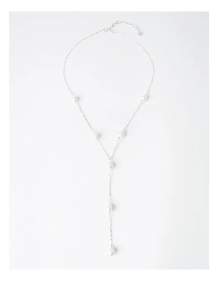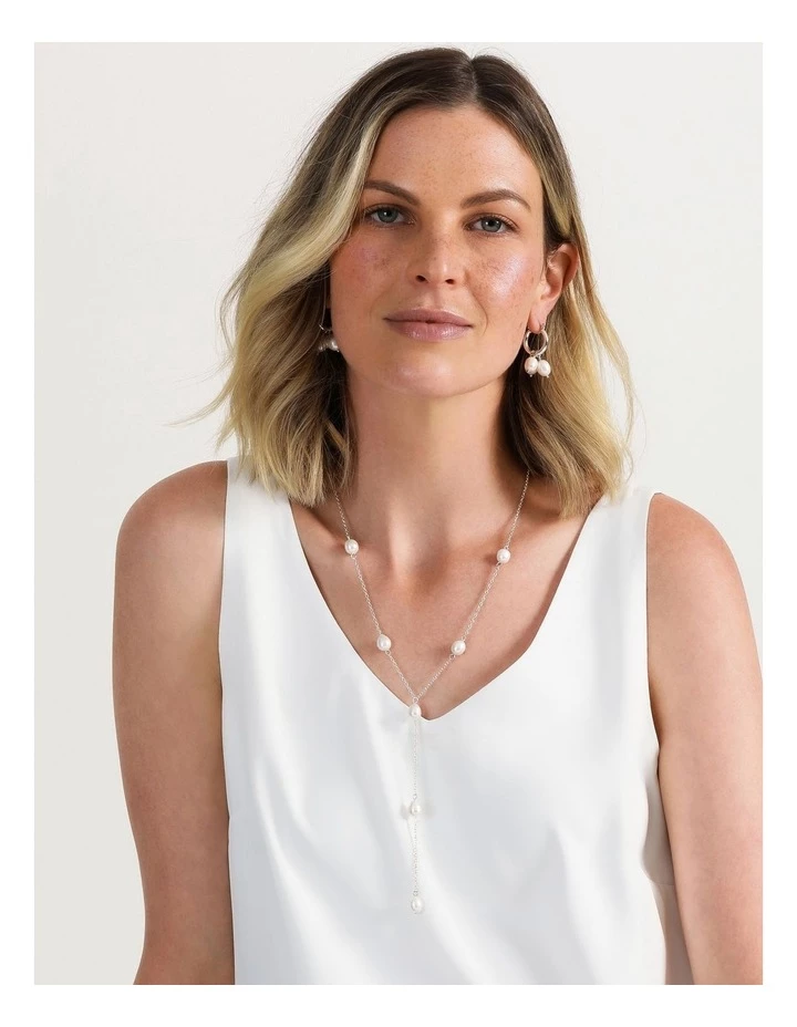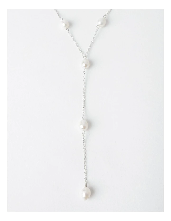 Perfect your look with a delicate lariat necklace. Featuring a fine, silver toned chain, this necklace is adorned with beautiful freshwater pearls. With its truly chic design, this necklace can be paired with any evening outfit for a luxurious finish.