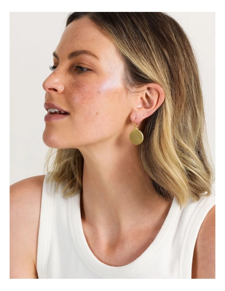 Add the perfect finishing touch to your look with a pair of drop earrings. These earrings feature circular drop pendants with a matte finish. Style with your favourite gold toned jewellery for a charming look.
