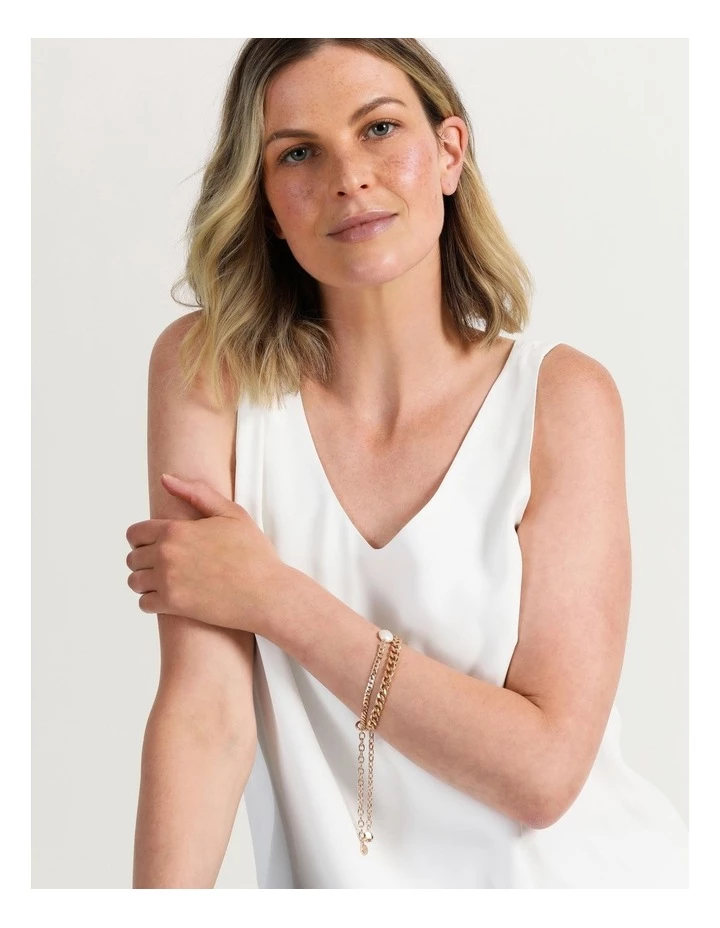 Elevate your look with a chain bracelet set. This set includes two gold toned, chain bracelets adorned with a stunning freshwater pearl detail. Wear them separately, or together for a chic finish.
