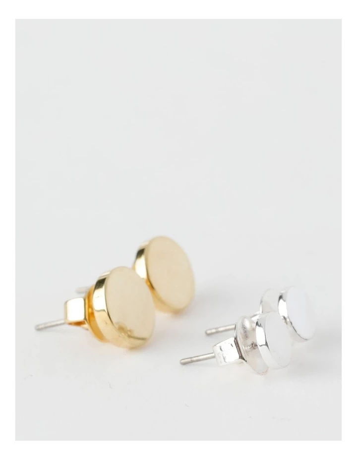 Elevate your look with a mixed metal two pack. This set includes two pairs of polished circle studs, in a gold-toned and silver-toned finish. Mix and match to your hearts content.