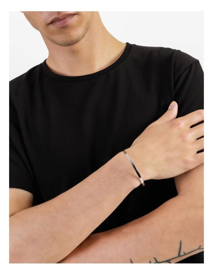 Add a sophisticated touch to your outfit with an elegant cuff. This timeless piece has a smooth feel and open cuff design, and is crafted from 100% stainless steel for a durable, high quality finish.