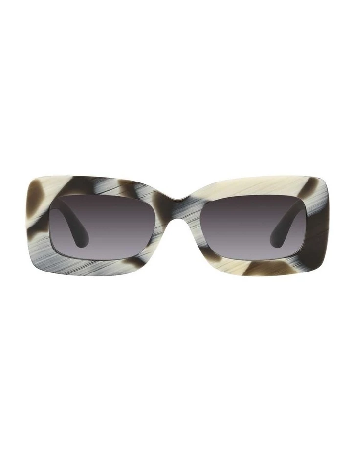 Narrow rectangular shape featuring a exaggerated acetate frame to create a bold look. Features openworked round metal monogram motif on temple. Perfect statement piece for the fashion-conscious customer.