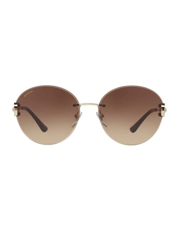 Bvlgari round gold metal sunglasses with light brown/dark brown gradient lenses. Come in a designer-stamped case.