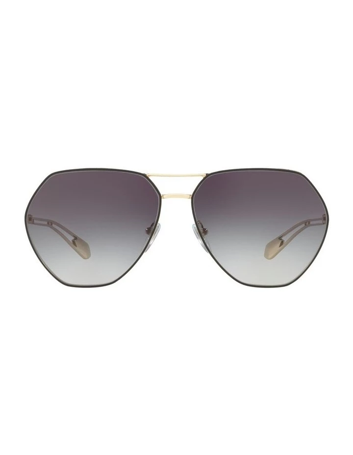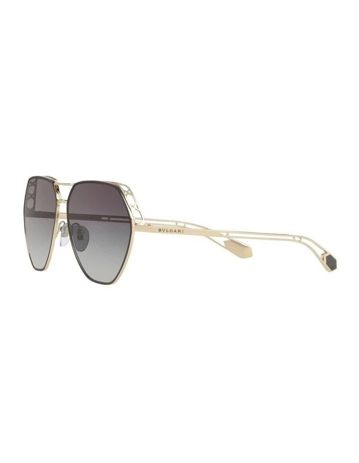 Bvlgari pilot black metal sunglasses with light grey/dark blue gradient lenses. Come in a designer-stamped case.