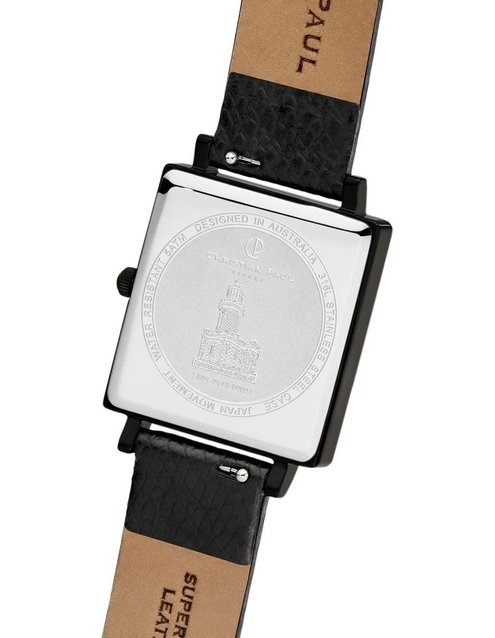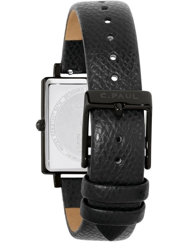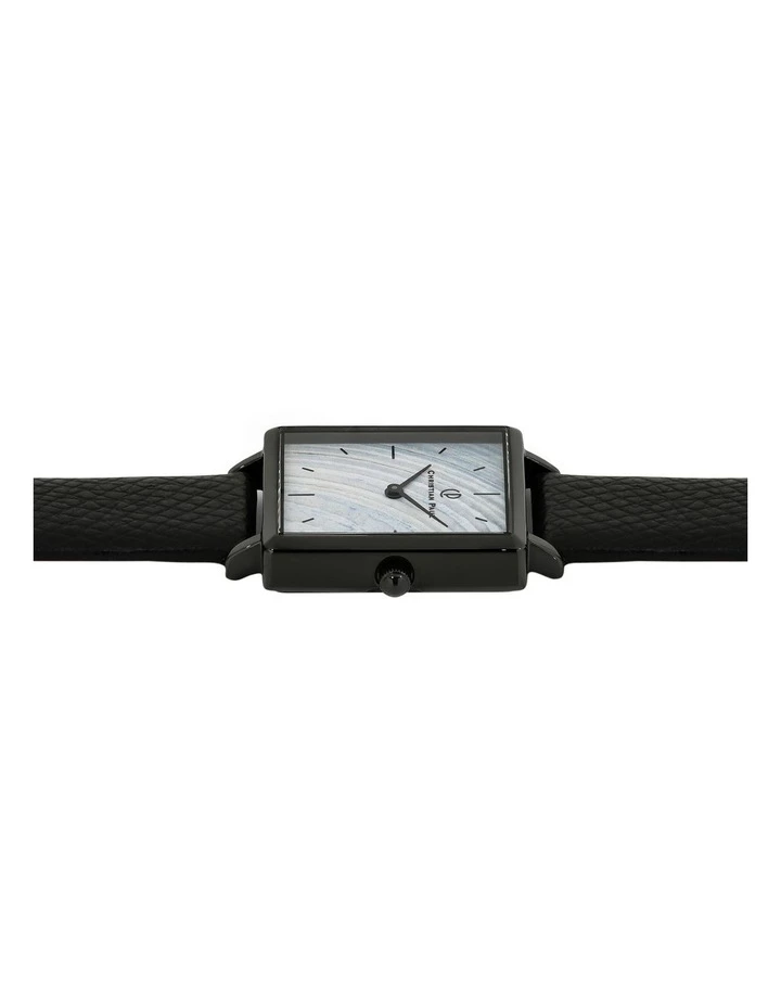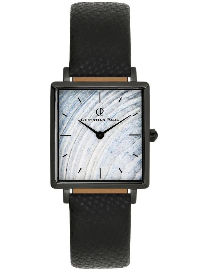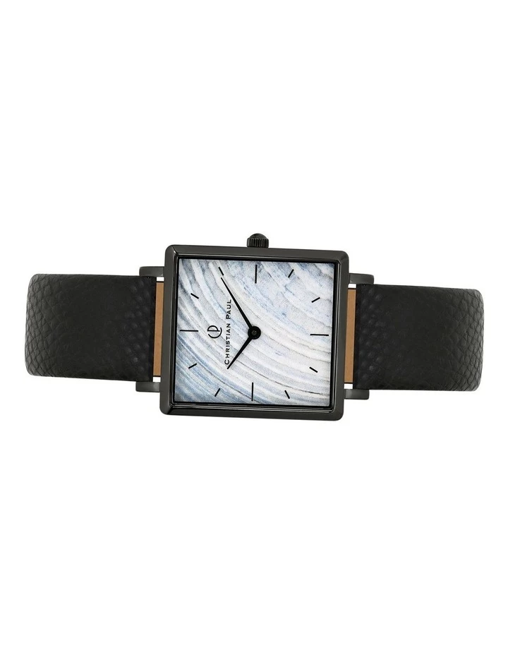 Christian Paul 1BSB2842 Byron Black Square Case, Shell Print Dial and Black Textured Super Fiber Leather Strap