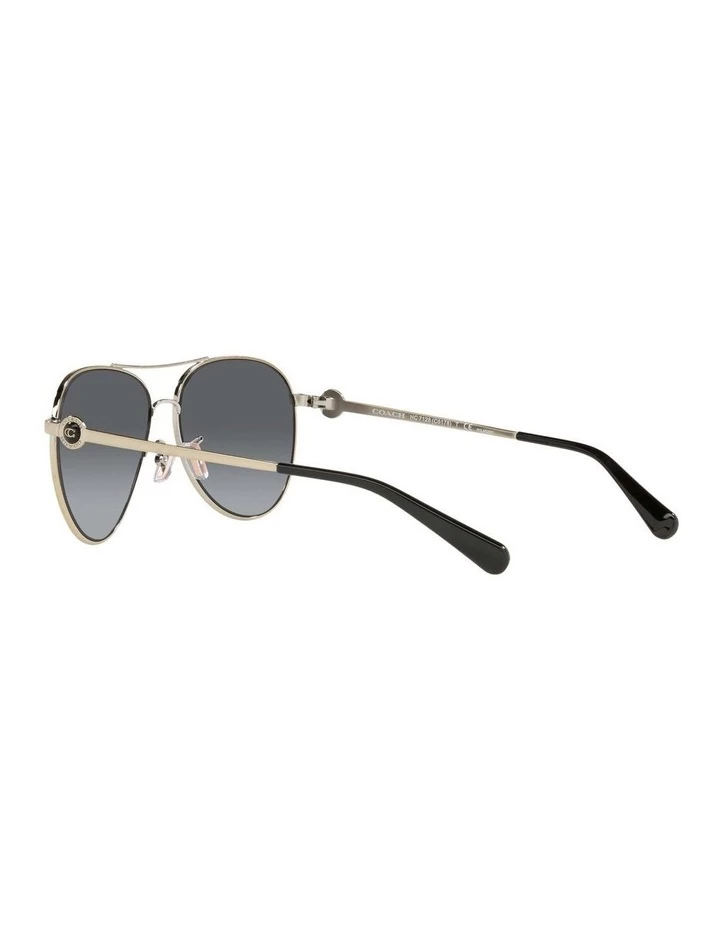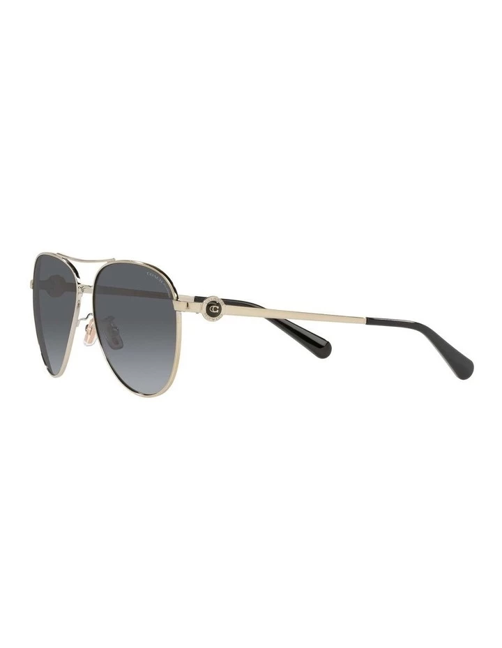 Classic pilot front in core metal colors and gradient lenses, with the Bonnie Cashin Button logo encased in striking enamel on a light metal temple.