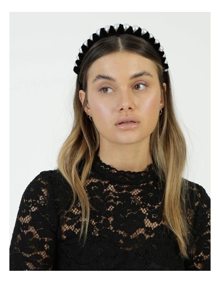 Keep the flyaways at bay with our velvet headband. Boasting a velvet wrapped structure, this headband comes in one size and is embellished with faux pearls. Use this as the perfect finishing touch to every outfit.