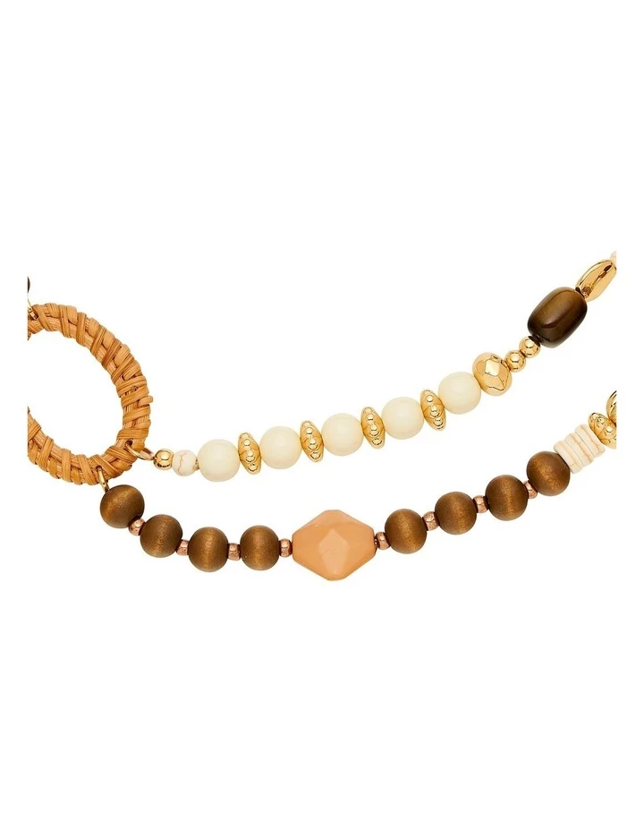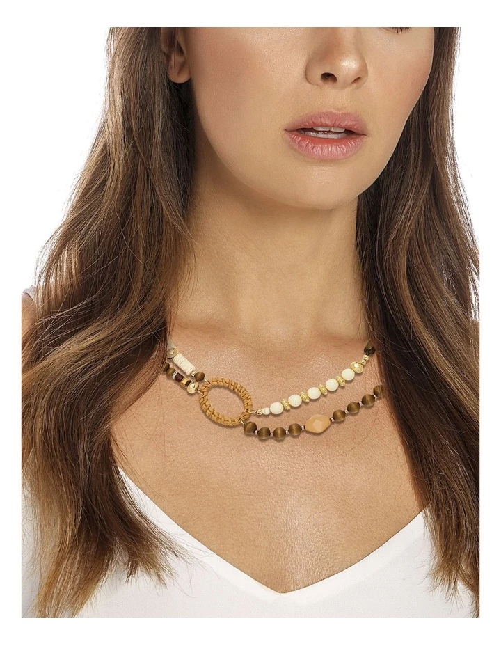 Australian brand David Lawrence has accompanied women through their daily lives, offering timeless investment pieces fit to the occasion. Choose a unique piece to complete your look with the Layered Mixed Raffia Necklace, featuring chic natural tones, raffia feature links, and gold-coloured details for a touch of shine.