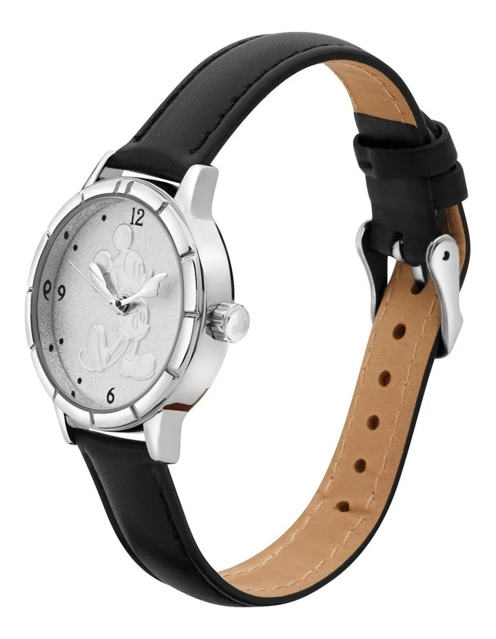 Disney 90th Anniversary Mickey Sculpted Black Leather Analog Watch TA56901