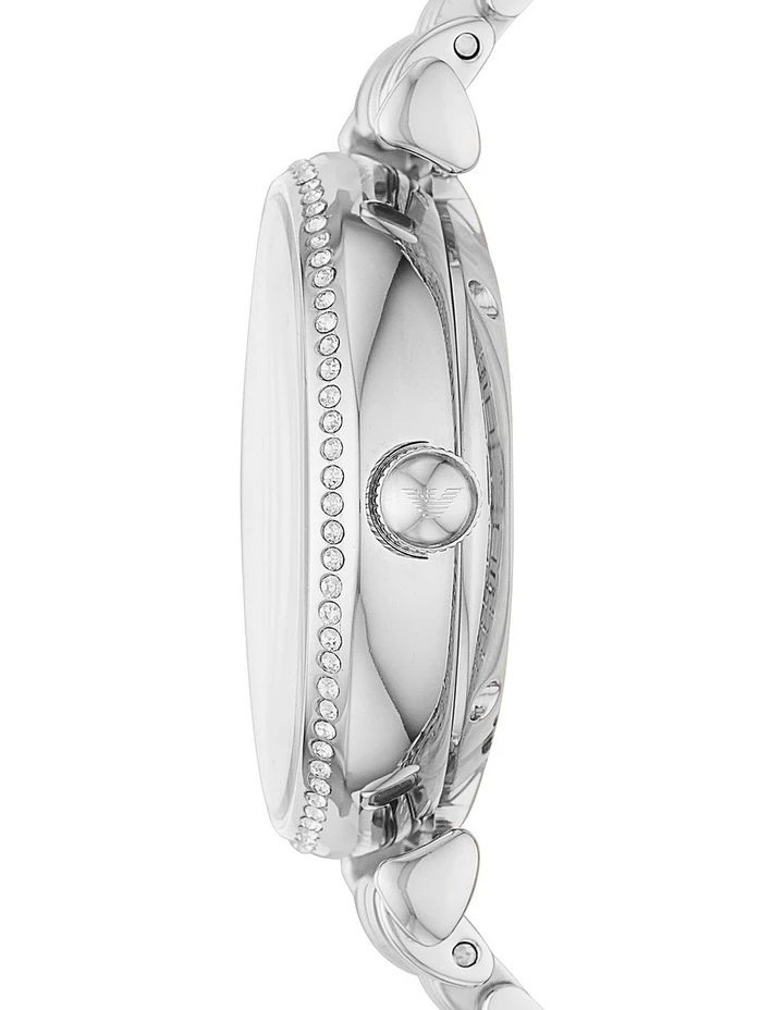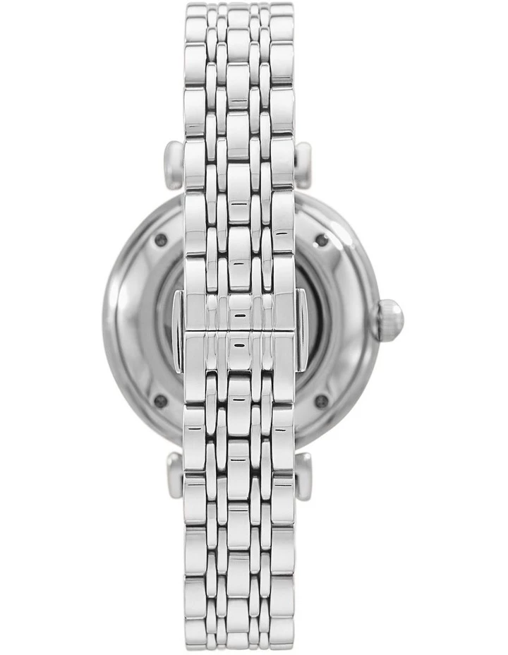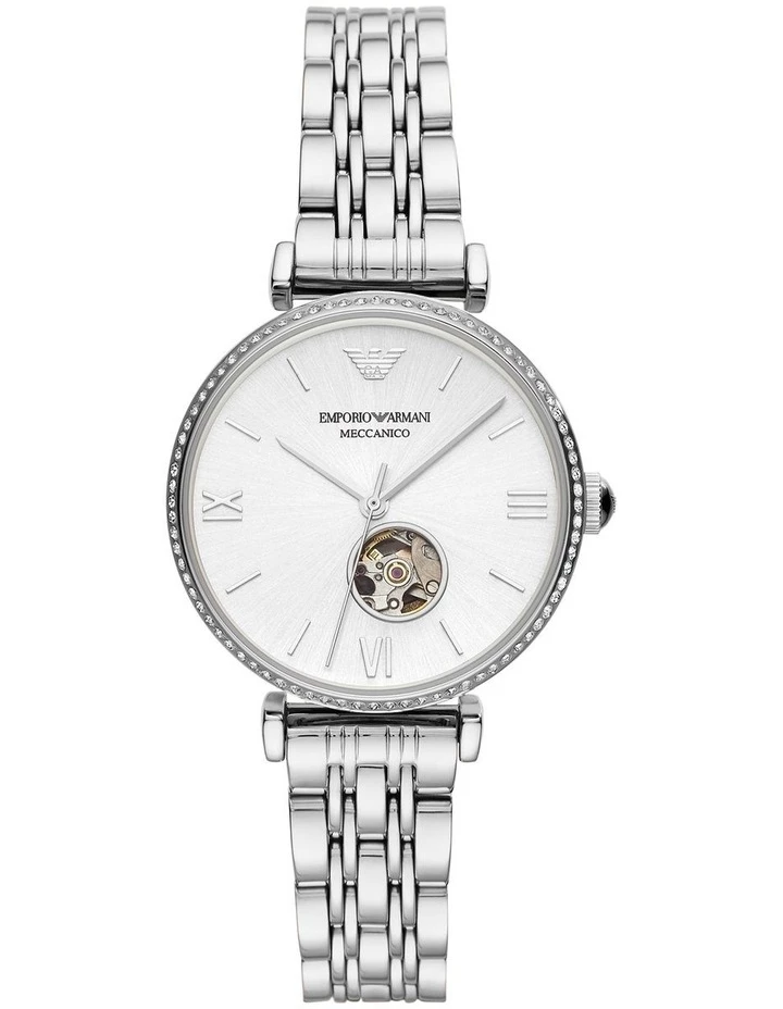 Up the glam factor with Gianni T-Bar’s collection from the House of Emporio Armani as it takes it a notch up. This impeccable timepiece fashioned with a glitz-outlined bezel features three-hand movement with a skeleton sub-dial and silver 7-link bracelet to finish the look. This silver automatic watch is surely going to leave you in awe with its design and performance.