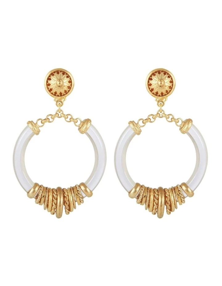 Earrings composed of an acetate ring delicately hand polished, adorned with 24k gold plated rings. Gas Bijoux collection comes from contemplating the magic of craftsmanship. All pieces are designed and manufactured in our home atelier, in the hills of Marseille, South of France. We dreamt that each woman who wears our jewelry feels Chic and Solaire. The Mariza earrings is a unique composition of vintage rings. Discover the balance of this earrings which has an hypnotic movement when it swings !However, the mix of acetate and gold brings a touch of grace and modernity.