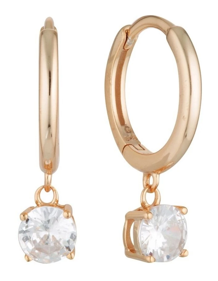 The Bria dangle hoop features a modern high shine finish with the addition of a perfectly cut dangling round cz that sparkles as you move! These earrings will go perfectly with any outfit, day or night!