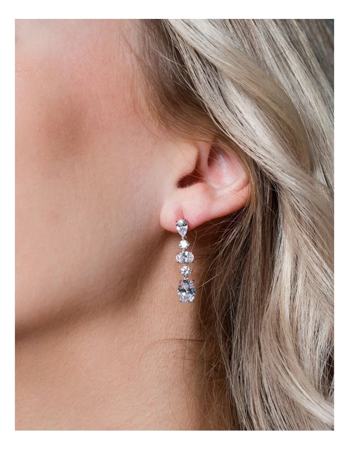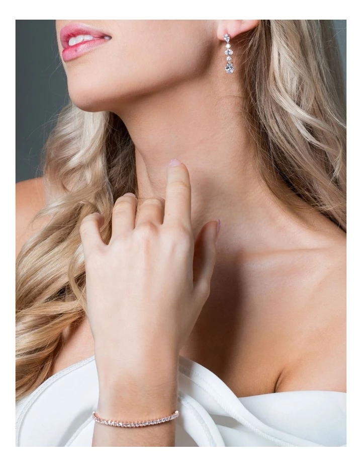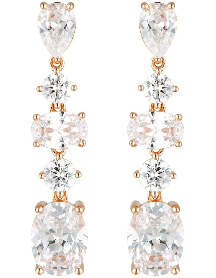 Christina by Georgini delivers an elegant, unique wedding look. With the perfect combination of Pear, Round and Oval stones these earrings are designed to capture the light for the most exquisite sparkle as you walk down the isle. Crafted in 18ct Rose Gold plated 925 Sterling Silver they measure approximately 29mm long by 6mm wide.