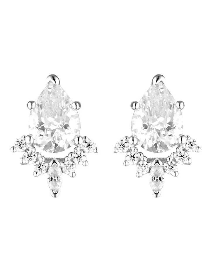 The Penelope Earrings by Georgini feature a stunning 7mm X 5mm sparking Pear Cubic Zirconia cradled in a shining beautiful tiara. Crafted in rhodium plated 925 Sterling Silver this stunning earring measures approximately 8.07mm by 12.15mm.