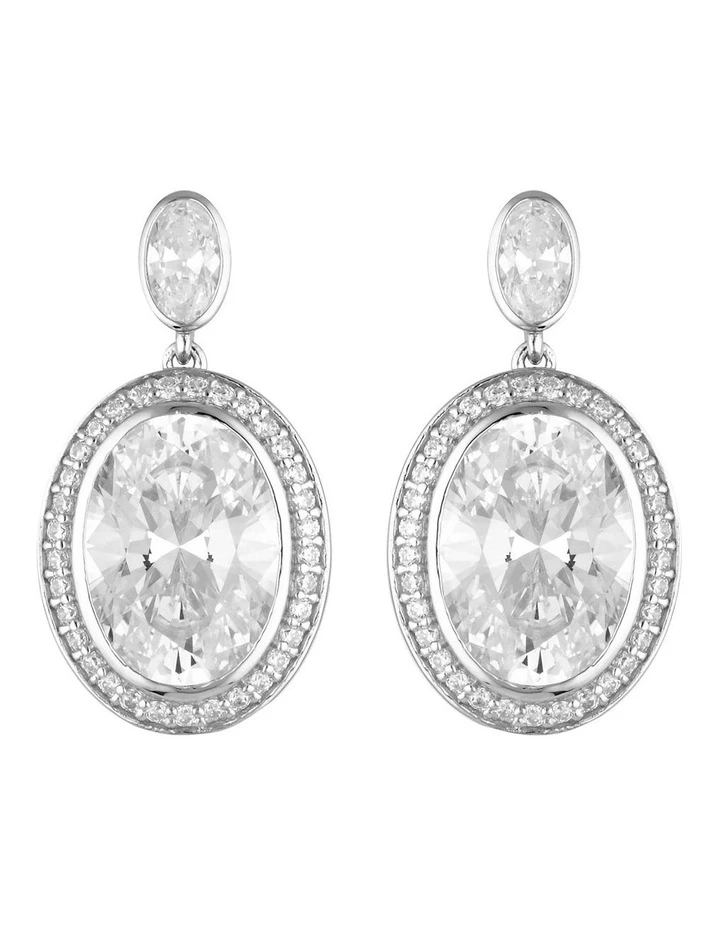 Glamorous and elegant the Grandezza Earrings are designed for those who love a fresh take classical style. A combination of 8.5 ct. tw. exquisitely cut oval and circle Cubic Zirconias await all those who relish pure sparkle and shine. Crafted from 925 Sterling Silver and Rhodium. Measures approx: 23.62mm