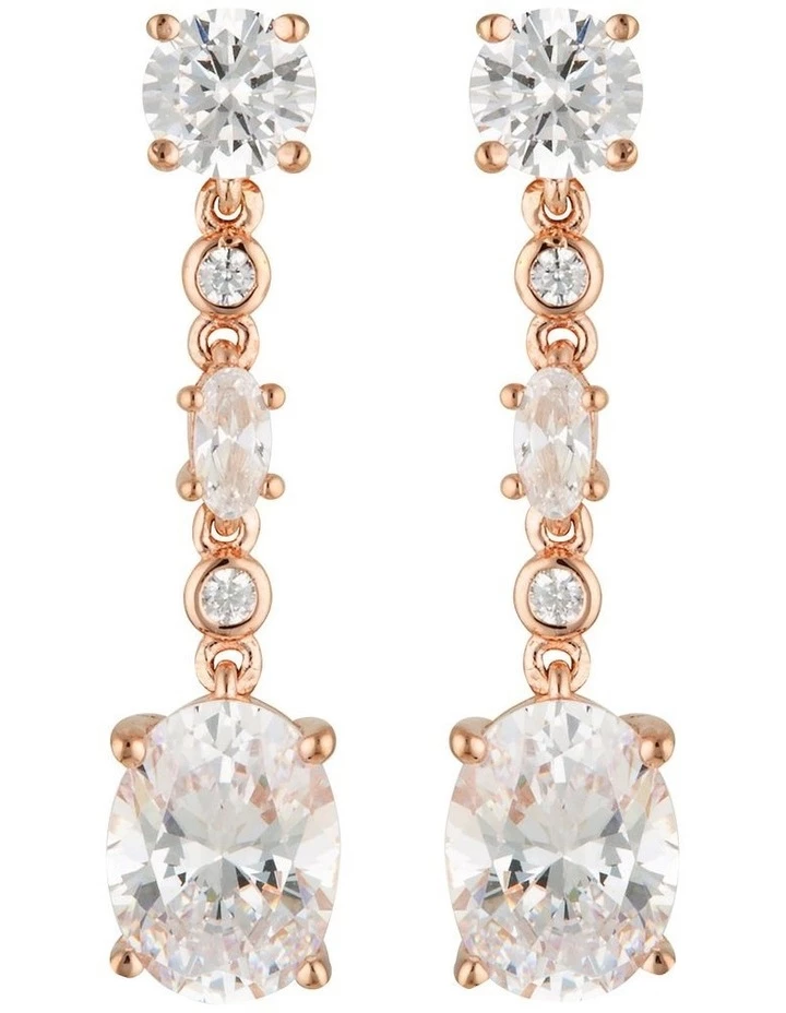 Go from ordinary to extraordinary with the perfect combination of ovals and circles in the Lusso Earring. This fabulous drop earrings are the perfect addition to your next glamorous event. Crafted from Rose Gold Plated 925 sterling silver with 4.5 ct. tw. of Cubic Zirconia. Measures approx: 26.85mm