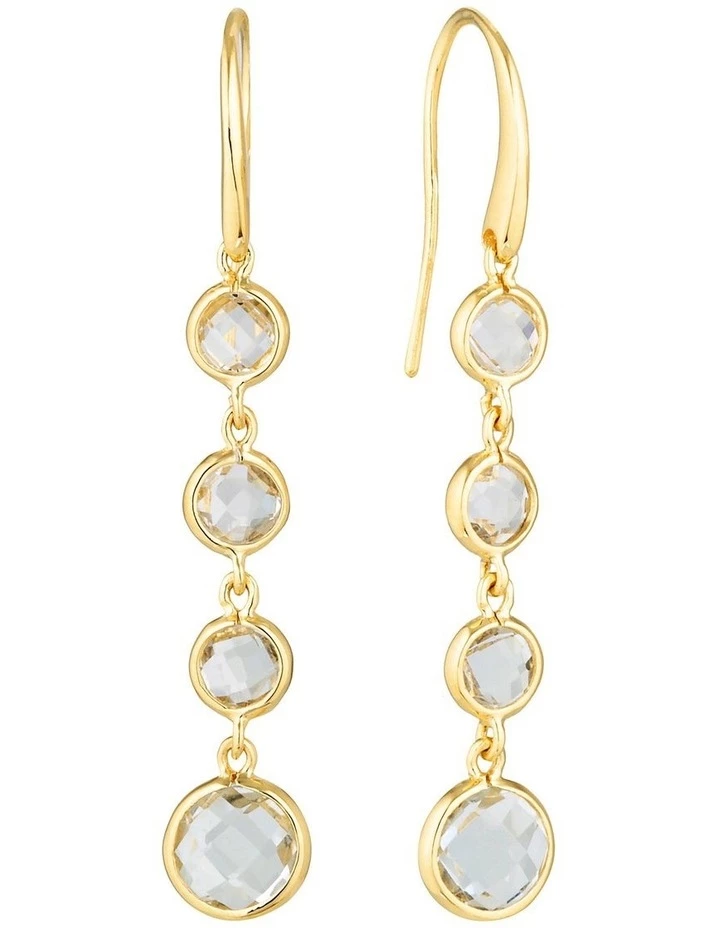 Be taken to a new level of glamour with these stunning white topaz four drop hook earrings. Featuring perfectly cut double briolette white topaz stones these earrings will sparkle and shine as they capture every glimmer of light.