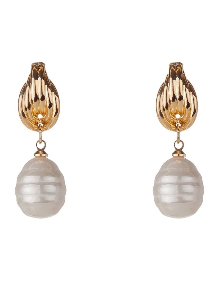 A gold shell with a classic baroque pearl drop. A must have addition you your accessory wardrobe.