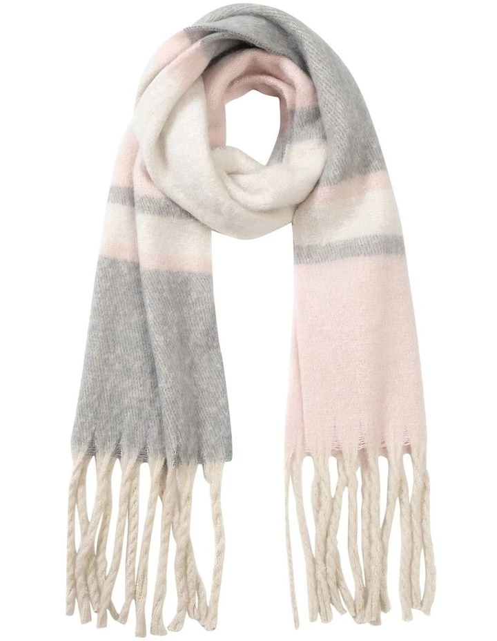 Stay warm this winter with a chunky blanket stripe scarf with long tassel fringing.