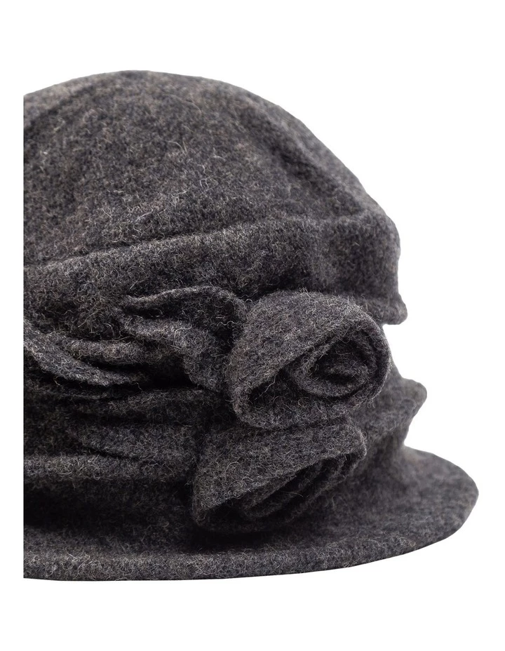 Stay warm this winter with a classic cloche hat with side flower detail. The perfect addition to your outfit on cold winter days.