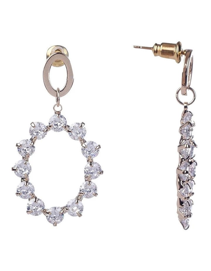 Add some glamour to your look with these oval drop earrings featuring round cubic zirconias on an oval shaped setting. An easy addition to any day or night time look.