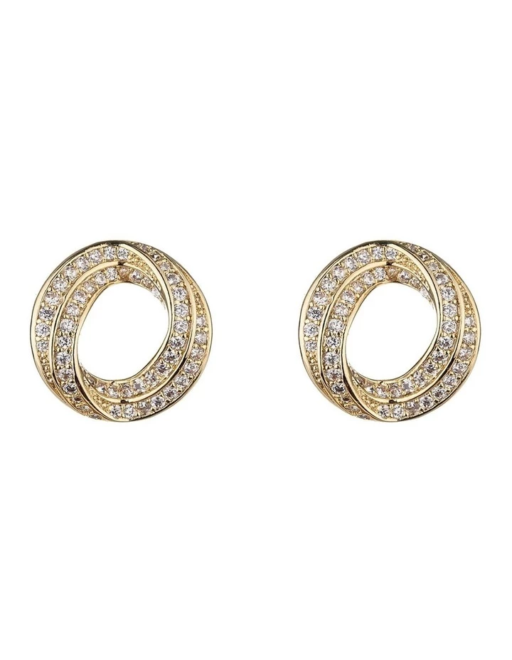 Add a touch of sparkle to your look with double wave ribbon circle CZ stud earrings. The perfect finishing touch to your day or night time look.