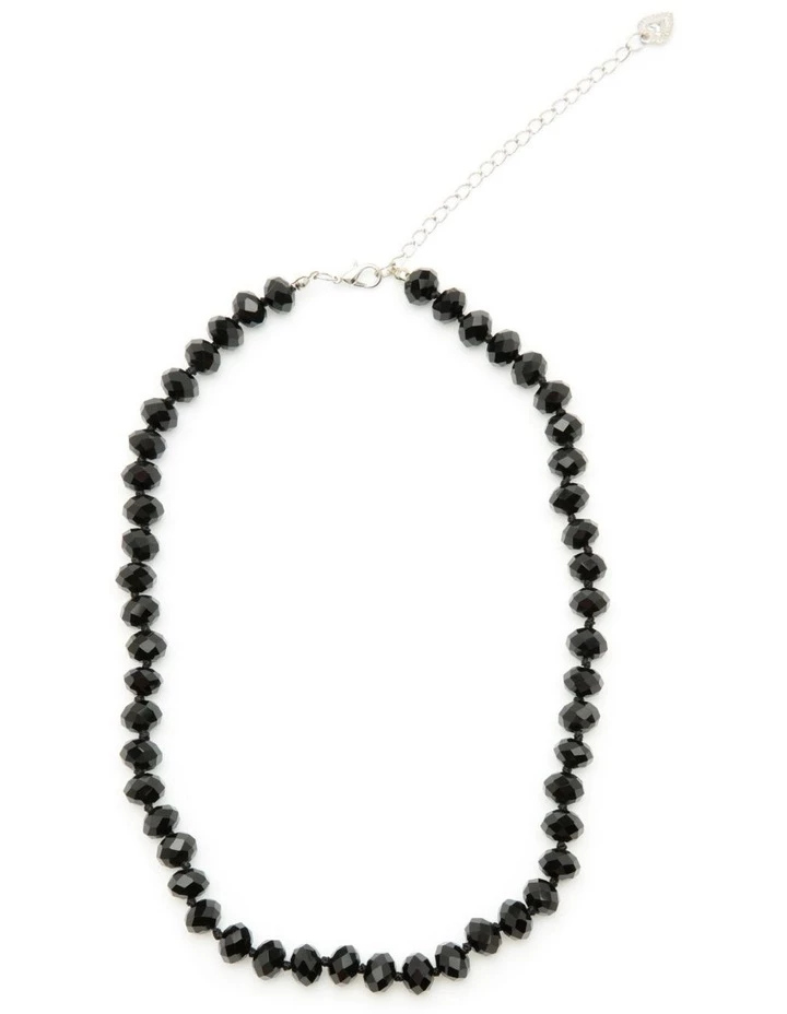 Gregory Ladner 10mm facet bead on 45cm necklet. Glass facet beads and rhodium extension chain. 16/1478