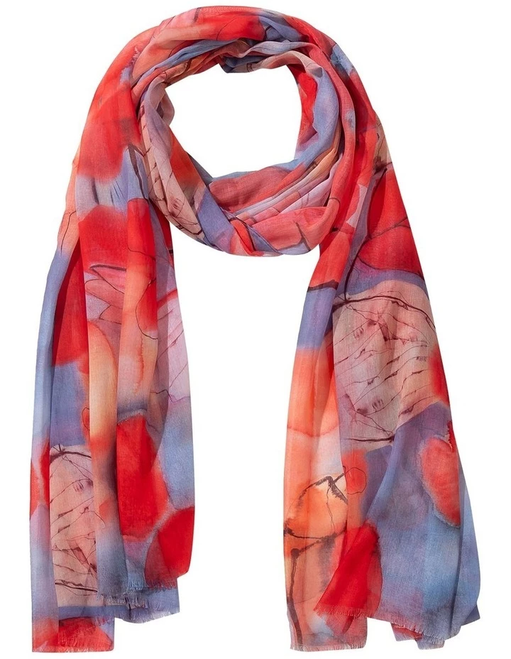 Add a splash of colour to your look with bright abstract watercolour cherry look scarf. The perfect addition to your accessory wardrobe.