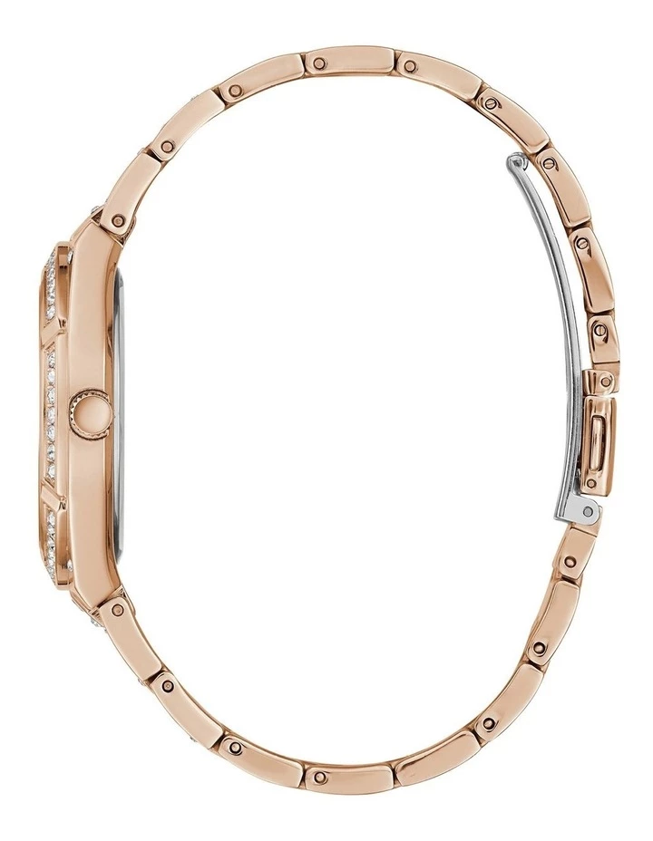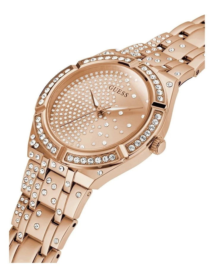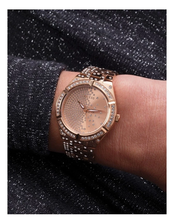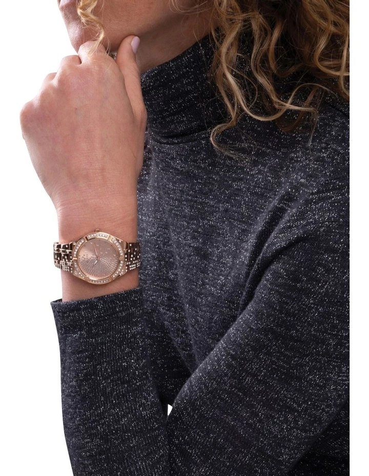This Guess Afterglow watch is perfect for those who have an active lifestyle. This timepiece features a trendy rose gold case and dial made out of stainless steel material.