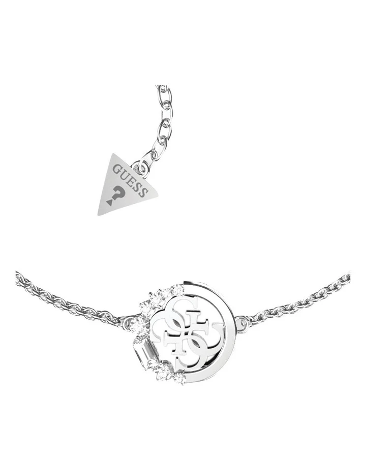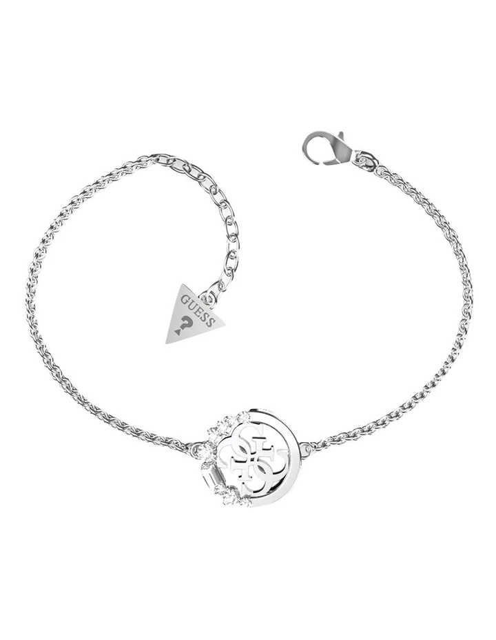 An on trend iconic logo piece, the GUESS Jewellery tiny chain bracelet from the Pure light collection in silver tone features a 4G logo charm .