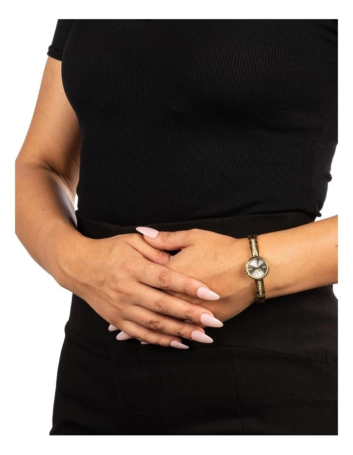 The Guess Ladies Sofia watch is a petite timepiece embellished delicately with Swarovski crystals in a 22mm case.