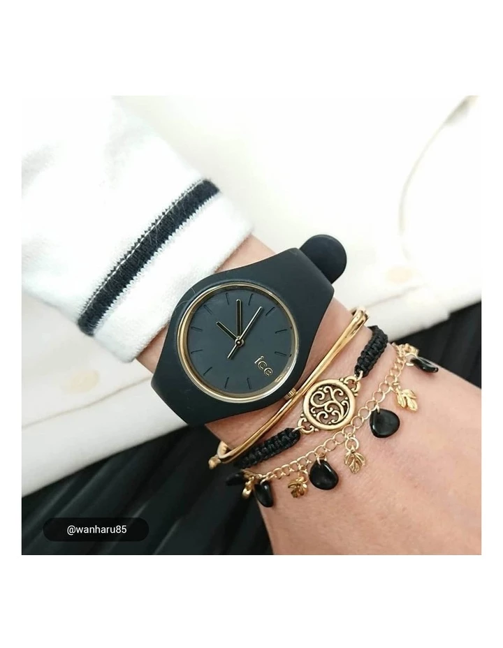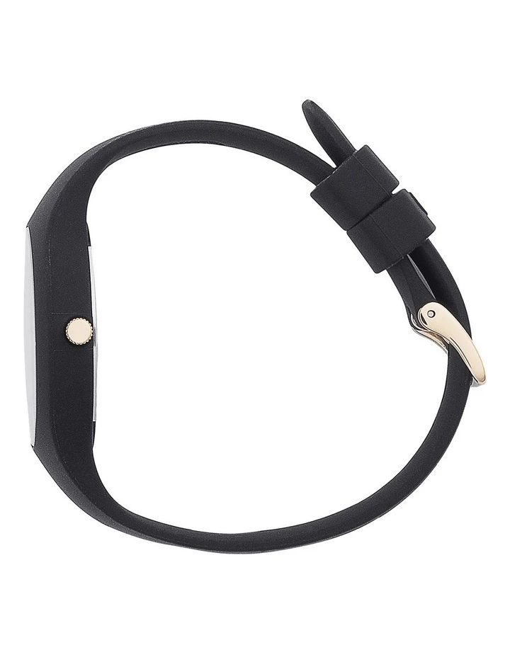 It is a watch with an ultra trendy design. Its extra flat silicone strap and its dial are black. Its bezel and hands are gold. This small model is perfect for women and children.