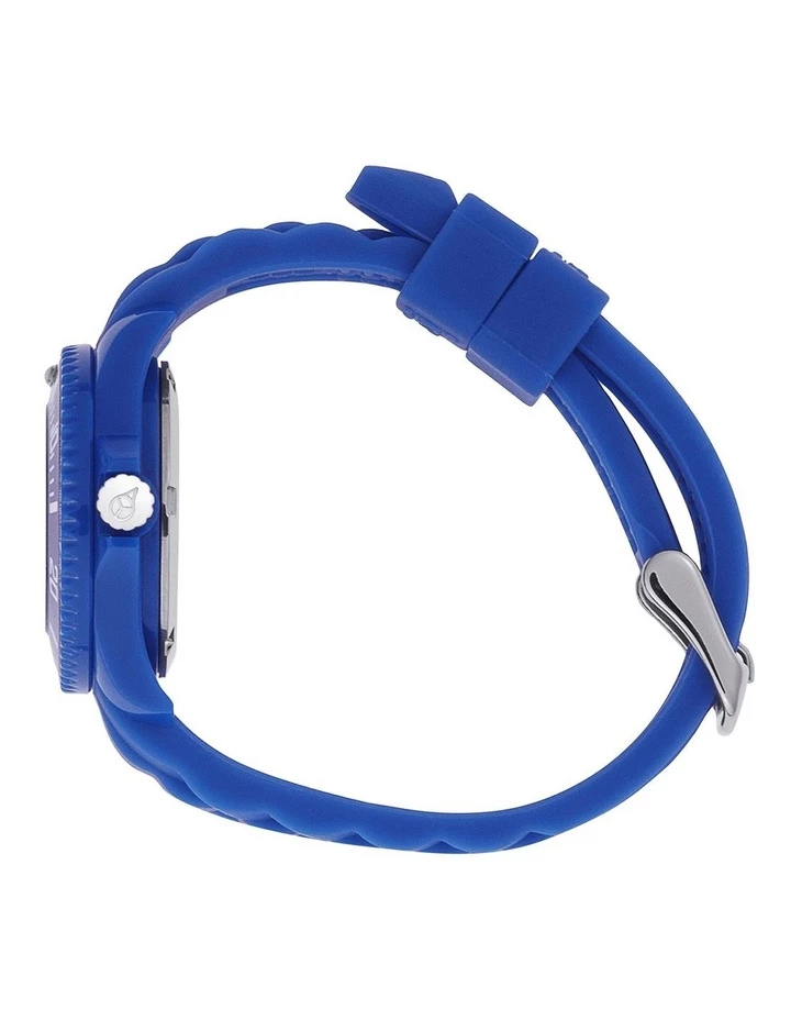 It is a blue silicone watch. With its small, white dial and its large, multicoloured numbers, learning to tell the time is child’s play. A perfect watch your children will love!