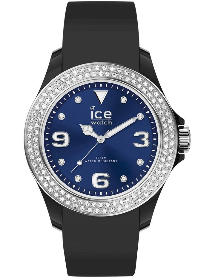 You will simply love the shimmering lustre of the ICE star black deep blue smooth watch! This small black timepiece, featuring a dial with silver details studded with sparkling crystals, will brighten up your wrist for a fabulously sophisticated look. It is mysterious, feminine and incredibly chic, with a captivating glossy deep midnight blue dial.