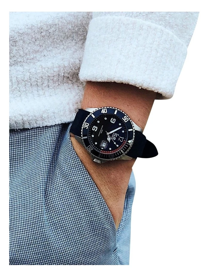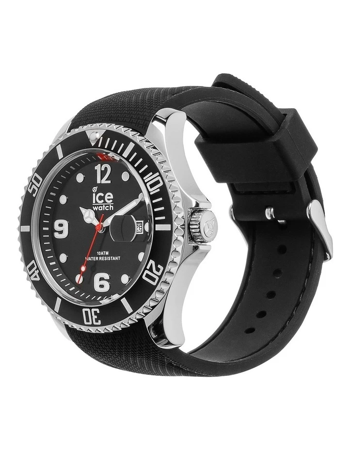 This masculine and robust black watch with red details gives a unique style to your everyday outfits. Thanks to its deep black dial with steel finishing and its silicone wrist strap, this watch will embellish your wrist with a modern and sophisticated touch.