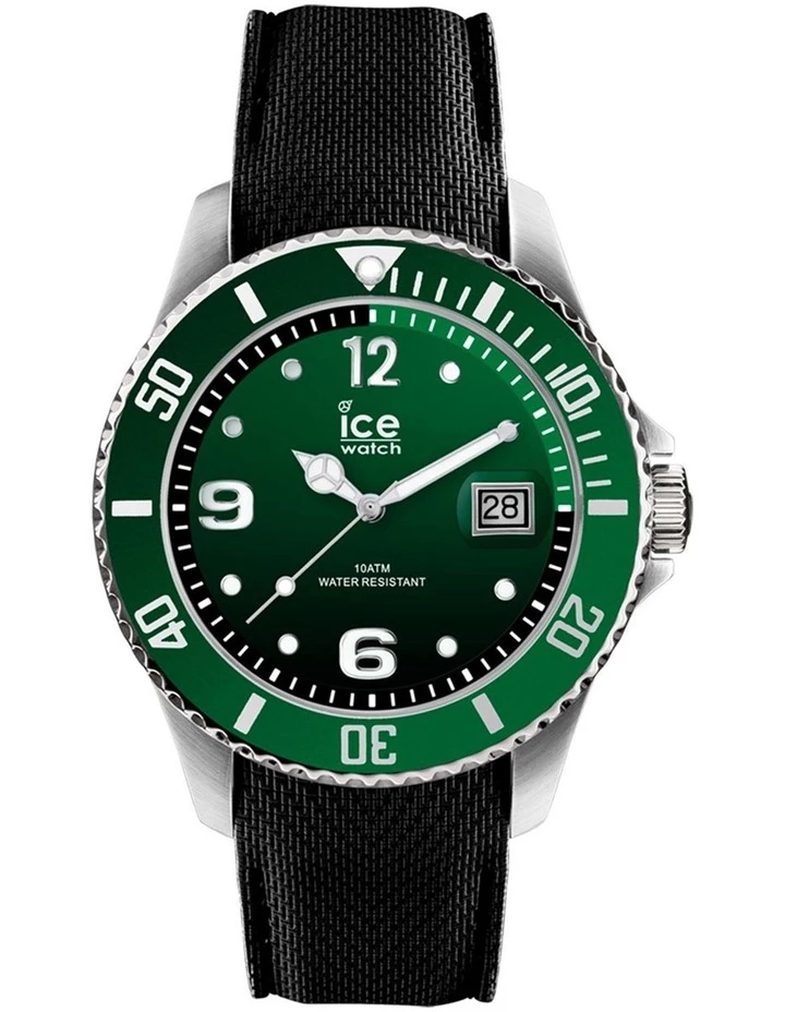This masculine and robust watch with a steel look gives a unique style to your everyday outfits. Thanks to its deep green dial and its black silicone wrist strap, this watch will embellish your wrist with a modern and colourful touch.