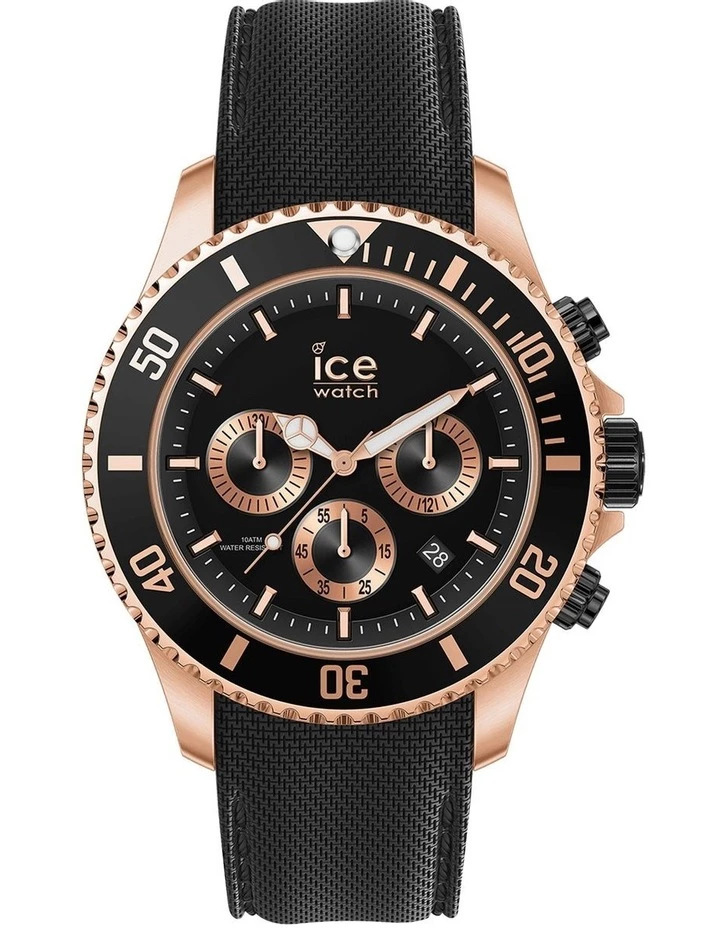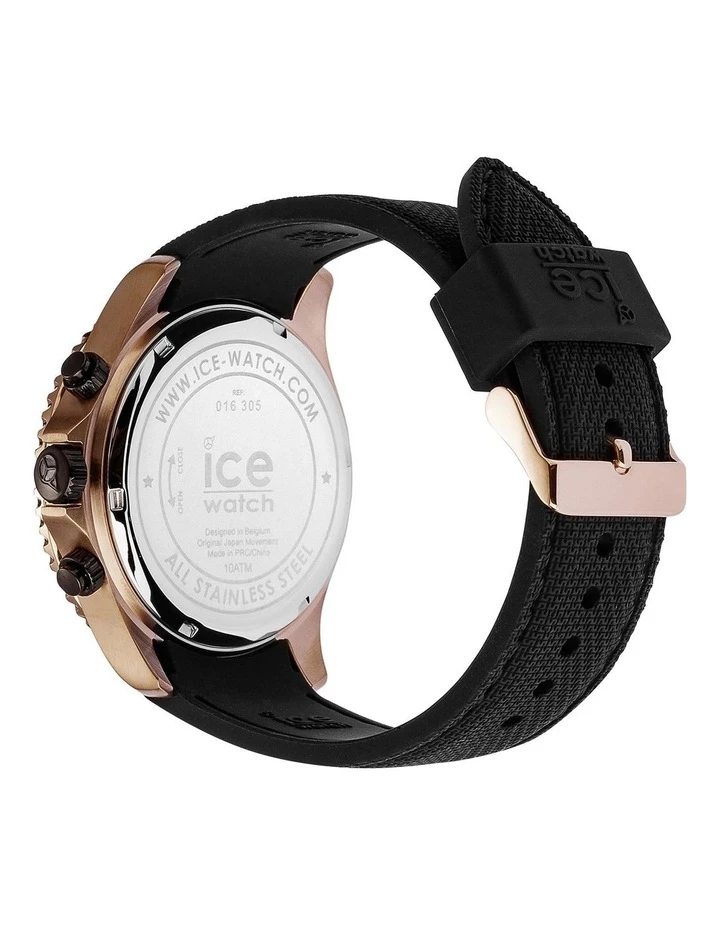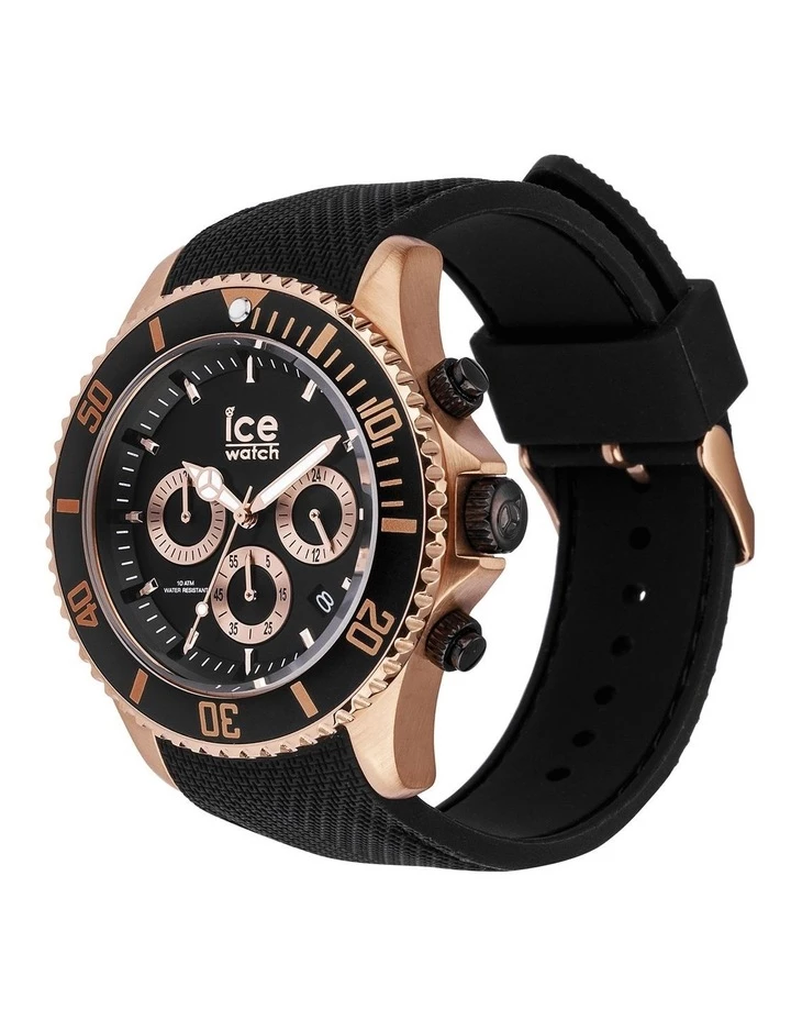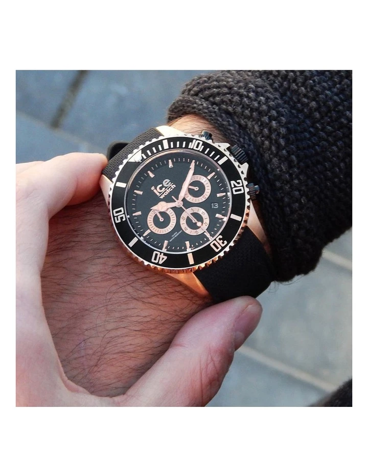 Masculine and robust, this black watch with rose-gold details provides effortless everyday style to achieve a modern look. With its deep black dial and steel details, stopwatch and silicone strap, this watch will add a sophisticated touch to your wrist.