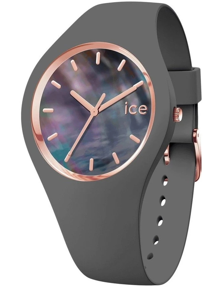 This delicate, mysterious, anthracite grey watch in flexible silicone with a shimmering pearly violet dial is perfect for even the slenderest of wrists. Its deep colour and dazzling lustre add a touch of class to every outfit. A real pearl among watches!