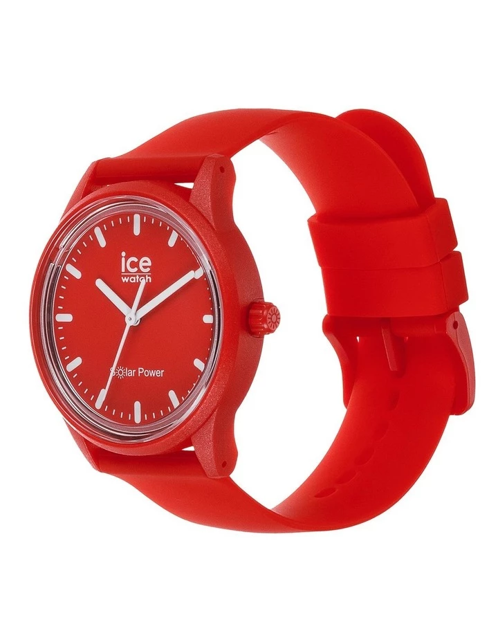 Go green and do your bit for the planet with the new ICE solar power red sea watch. The red solar-powered timepiece is ultra slim and feather light. Made from super soft silicone and featuring a sleek dial, this unisex model is the ultimate minimalist statement. Simply expose it to natural or artificial light to charge, then sit back and enjoy as it lasts and lasts! It comes in a reusable felt pouch made from recycled plastic bottles.