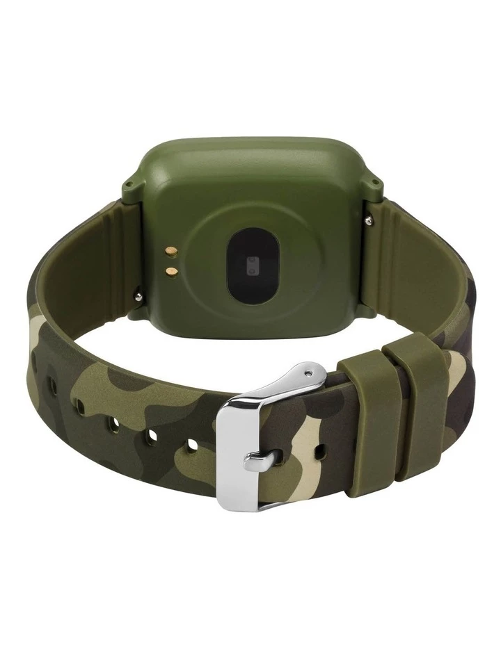 The iConnect Kids Active features a 37mm square green tone case, graphical colour display and camo green silicone strap.