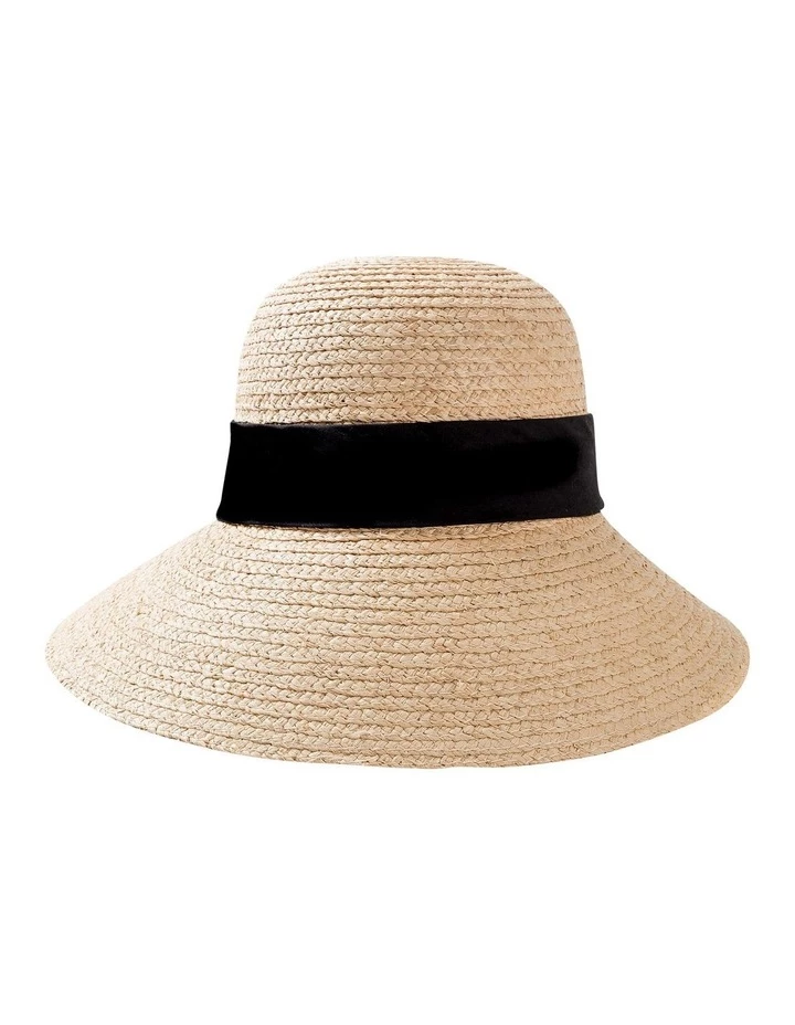 Be bold with this refined and feminine raffia style bonet with contrast tie trim. Crafted from sustainably harvested Madagascan raffia.