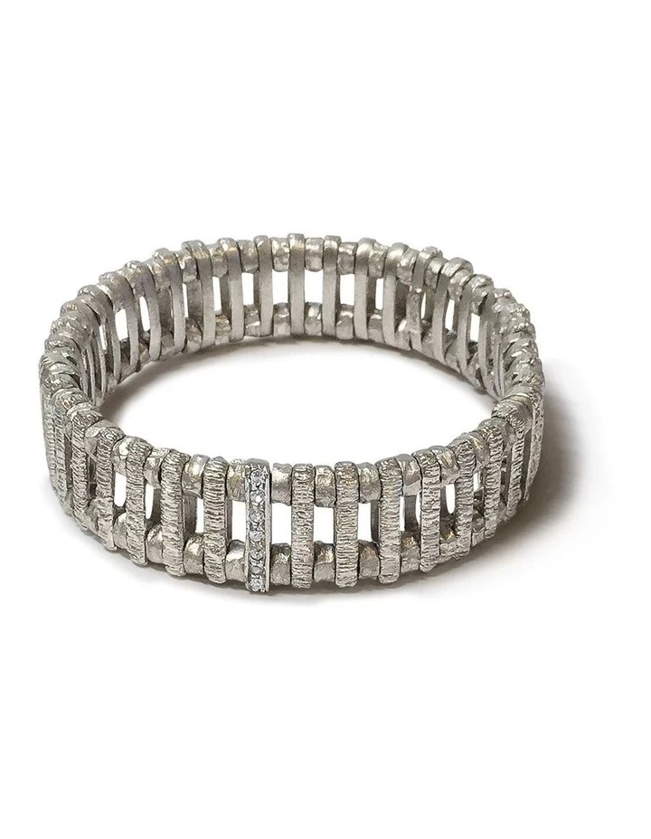 Anastasia Roman Empire Bracelet Rhodium Finish With Swarovski Crystal Pave’ Set. All The Elements That Compose The Jewel Are Microfused And Assembly By Hand By The Finest Italian Craftsmen With The Same Care and Precision Of The Fine Jewellery.