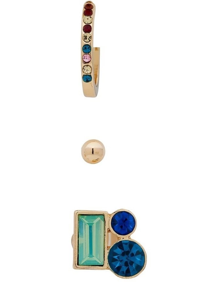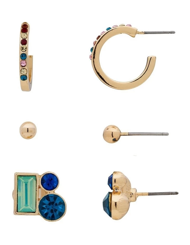 - Set of 3 earrings with gold-coloured plating and mixed stone detailing