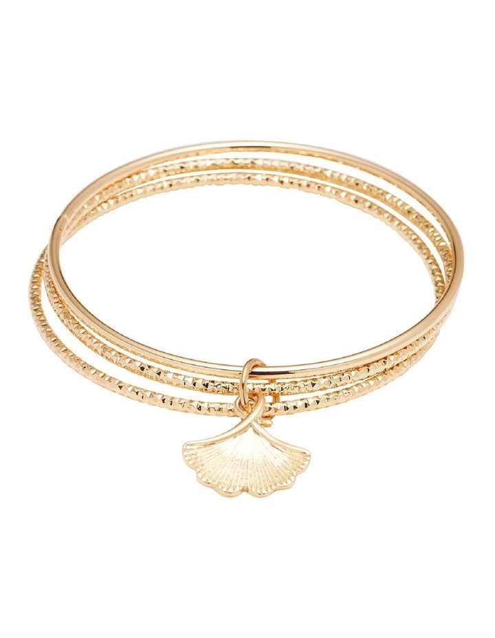 - Textured gold-coloured bangles with charm and glasspearl accent