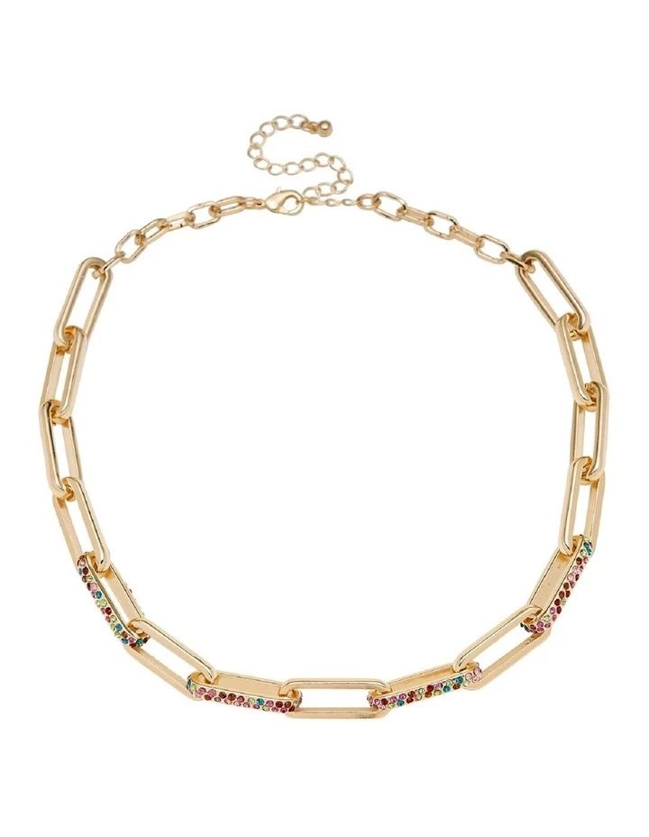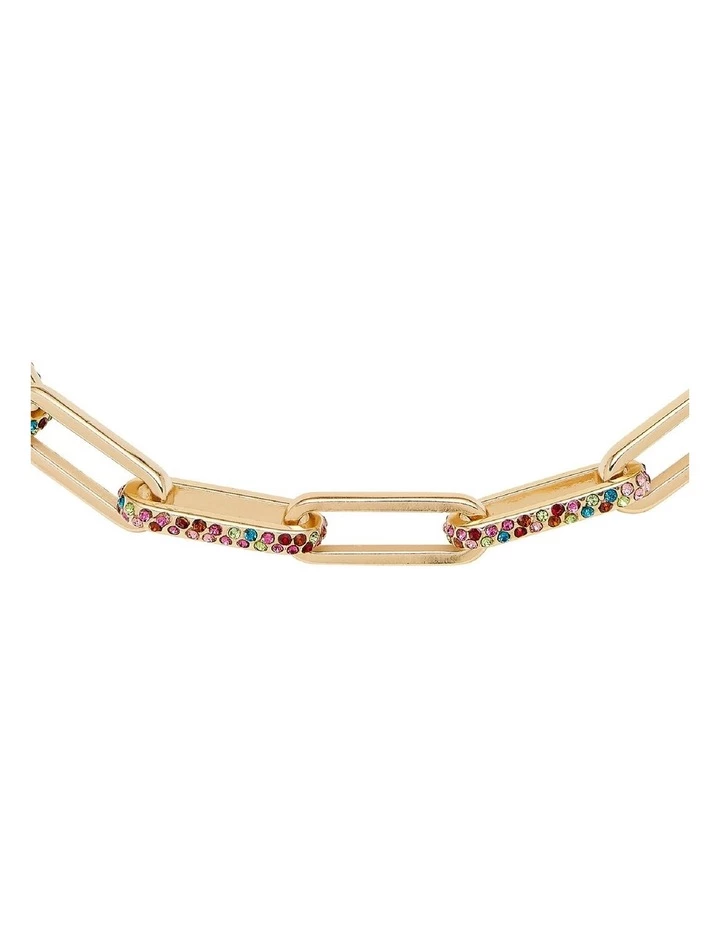 Marcs captures spirited design, colour and vibrant character creating timeless classics and expressive statement pieces to add individuality and confidence to both work and weekend. Complete your look with the statement style of the Multi Coloured Chain Necklace. With bold links in gleaming gold-coloured plating with fine multi-coloured stone detailing for a gorgeous touch of sparkle, its an eye-catching centrepiece for day or evening ensembles.