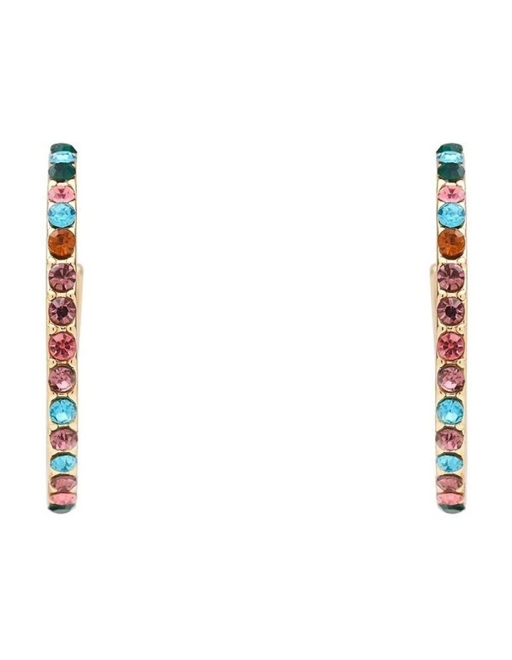 - Gold-coloured hoop earrings with multi-coloured stone detailing
