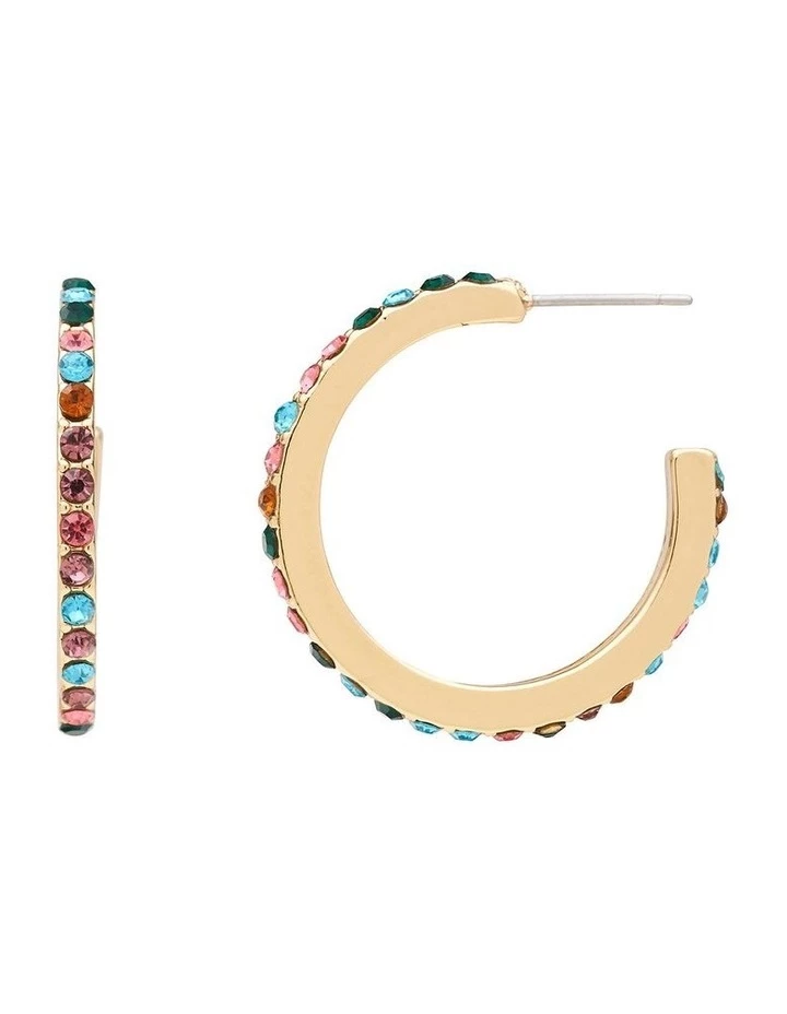 Marcs captures spirited design, colour and vibrant character creating timeless classics and expressive statement pieces to add individuality and confidence to both work and weekend. Put a colourful twist on classic hoops with the sparkling Multi Coloured Stone Hoop Earrings. These gorgeous hoop earrings feature brilliant gold-coloured plating with multi-coloured stone detailing for a stunning finish to day or evening looks.